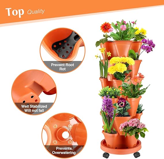 La versatilité est impressionnante: cultivez des fraises au niveau supérieur pour profiter du maximum de soleil, des herbes aromatiques au milieu pour un accès facile lors de la cuisine, et des plantes décoratives au niveau inférieur pour embellir l'ensemble. La soucoupe inférieure récupère l'excès d'eau et de terre, maintenant votre espace propre et organisé. Vous pouvez même démonter l'ensemble pour réorganiser votre agencement au fil des saisons!